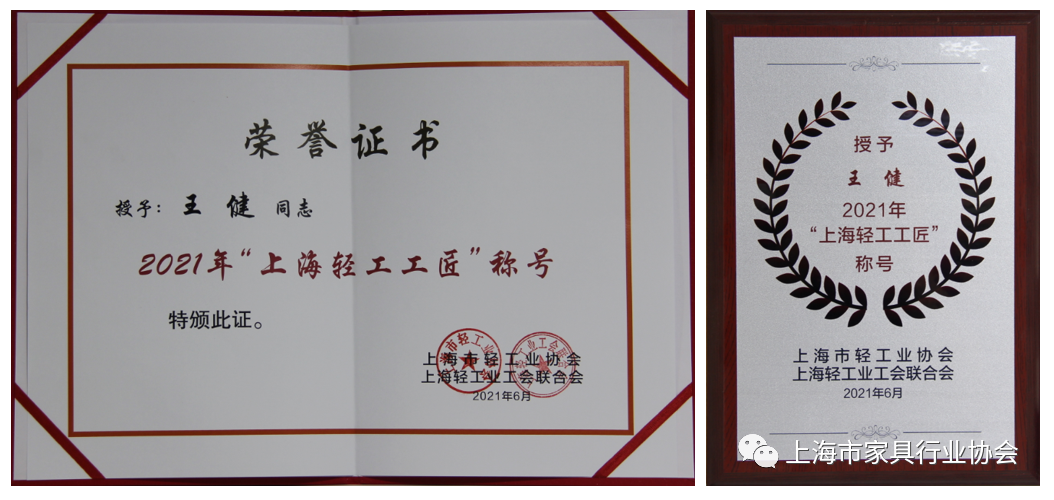 上海文信家具董事长王健荣获“上海轻工工匠”荣誉称号