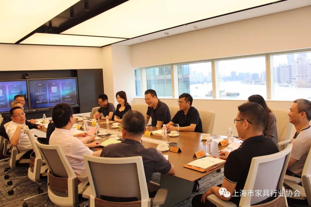 2021年7月18日浙江家协秘书长马志翔、副秘书长顾佳佳、浙江家协顾问,浙江理工大学客座教授,浙江省库专家吴少敏一行三人应邀来沪与上海家协座谈交流。本次座谈在外滩震旦国际大厦内,上海家协同时邀请上海市经信委都市产业处副处长陈建林、上海家协特邀专家,原上海市市场监管局一级巡视员沈伟民共同参加座谈交流。震旦(中国)董事长室总经理廖登熙、震旦(中国)家具创新中心总经理高曰菖以及震旦(中国)家具创新中心的团队成员一同出席了交流会议。