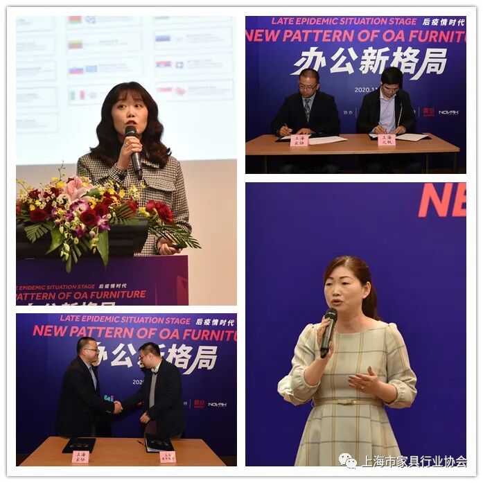当天下午,上海国际创意城市智库秘书长、东华大学教授潘瑾女士;中国家协科学技术工作委员会副主任委员、中南林兼职教授、硕士生导师、上海家协专家顾问许美琪先生;上海浦东新区知识产权局发展促进处,知识产权战略专家、全国企业知识产权创新项目的设计人和实施人、全国企业知识产权指导工作先进个人蒋严先生;上海之帆“一带一路”经贸巡展组委会副秘书长王蓓蕾女士;上海博华国际常务副总经理钟蓓红女士;设计中国执行董事林奋先生以及来自办公家具领域的50多家企业领导参加了此次沙龙活动。上海市家具行业协会秘书长李霞女士主持了本次沙龙活动。上海国际创意城市智库秘书长潘瑾女士为沙龙活动致辞,她表示2010年上海加入联合国教科文组织“创意城市网络”(UCCN),被授予“设计之都”称号,上海不仅在设计,在创意,在思索等方面一直走在前列。今天在这特殊时期,举办这样一次主题沙龙,也是在思索未来,希望通过对话和互动为企业开辟新的格局。沙龙开始后,首先许美琪教授为大家做了《国际家具业新格局》主题分享,从近十年各国家具生产增长数据上分析了国际家具格局的变化。疫情之下国际形势动荡多变,国际家具业随之改变格局,最后,他从中国家具出口的变化上对未来国际家具格局做了预测分析。国际形势突变,内循环引来竞争,如何用好知识产权保护好企业创新成果?随后,知识产权战略专家蒋严老师为大家作《用知识产权来竞争》主题分享。他通过四个典型案例为大家讲解企业知识产权策略。由于疫情原因,意大利巴吉机械中国总经理何战先生为大家发来了视频,助力办公家具企业探索新的发展格局。疫情之下,人们纷纷感受到生活和工作状态的变化。后疫情时代,办公状态还将会发生怎样变化呢?作为办公家具领域的行业领军企业震旦家具和诺梵系统科技也为大家带来了企业的思考。震旦家具创新中心总经理高曰菖先生为大家分享《VUCA时代,如何通过空间变革管理提升企业应变力》。他认为这是一个不确定的时代,疫情为大家带来了困难,同时也为企业带来了机遇。疫情让人们关注健康,同时也促使企业变革纳新。家具企业应该从疫情中思考未来办公生活的变化,并为后疫情时代提供更好的办公解决方案。诺梵系统科技CMO缪劲锋先生以《办公家具如何为企业赋能》为主题,通过人们在疫情期间居家办公及集体办公中遇到的问题和痛点,并结合新的办公需求,为大家分享诺梵系统科技在后疫情时代的办公系统解决方案。在沙龙互动环节中,企业代表纷纷提出问题,就企业提出的产品创新、设计版权保护、明年政府采购、线上市场开辟、企业合作等问题与嘉宾们做了互动交流。在沙龙活动中,与会嘉宾共同见证了上海市家具行业协会与上海之帆365线上平台、家具在线平台签订战略合作协议。上海市家具行业协会办公专业委员会秘书长陈宇浩先生与上海之帆“一带一路”经贸巡展组委会助理主任汤文达先生、博华国际家具部业务主管丁罕俊上台签订战略合作协议。上海之帆“一带一路”经贸巡展组委会副秘书长王蓓蕾、上海博华国际副总经理钟蓓红女士分别做了平台介绍。双方未来将在线上平台发展方向上展开深入合作,凝心聚力,为会员企业插上线上的翅膀,助力企业多渠道发展。