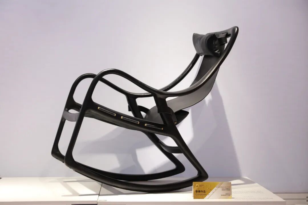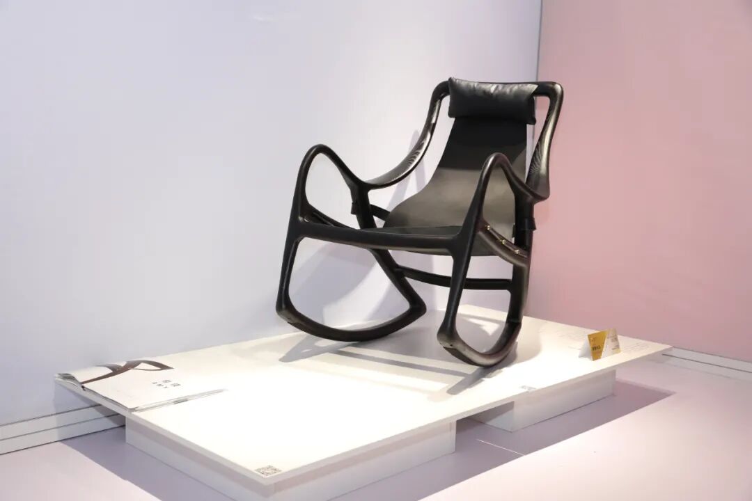 【逍遥椅】采用软包与木头金属的结合,通过五轴精工工艺加工,摇椅通过五轴精明的制作使得摇椅腿和弧形底部可以任意切换,从而达到不同的乘坐需求,在沙发椅和摇椅中任意切换。(荣获2020金点单品奖)