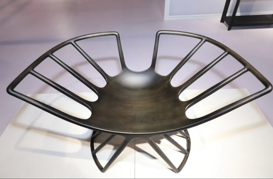 【曲水流赏椅】所呈现的是对滥觞于消费文化的简单几何造型的反思。以交椅、圈椅和官帽椅三种最基础的中国范式为蓝本,通过让曲面在空间中进行生长、发散并建构一种迥然不同的设计语言。