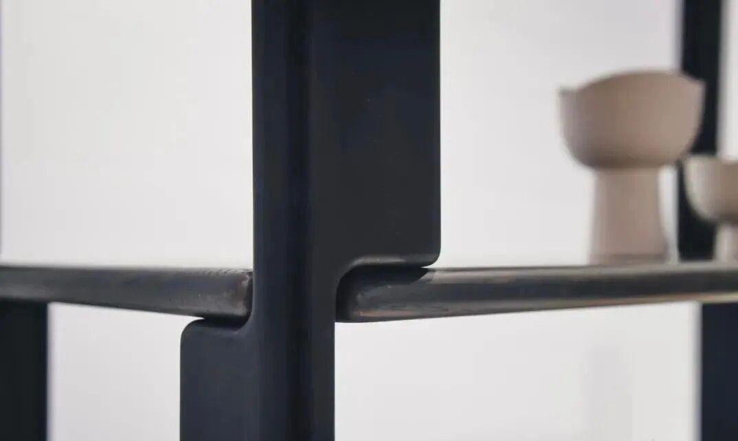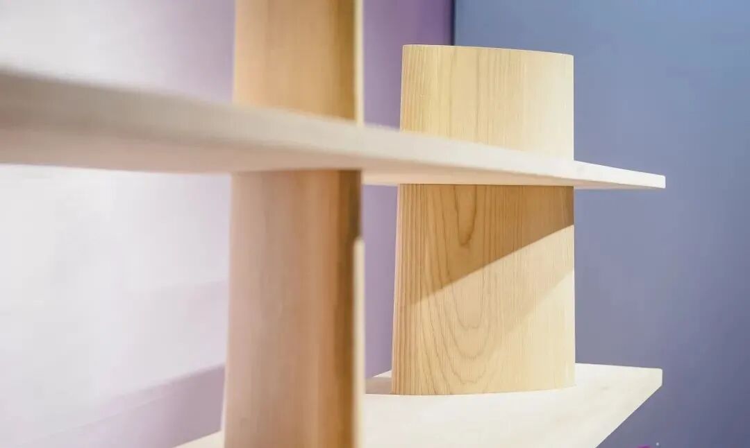 【角落书架】利用5轴CNC从一整块木料中加工出4只样的柜腿,尽可能减少废料和加工工序。L型柜腿和面板装配后形成“夹心”的语意,打破了常规柜体家具中结构的规矩感,在实现视觉层面的平衡感同时增加结构层面的稳固度。