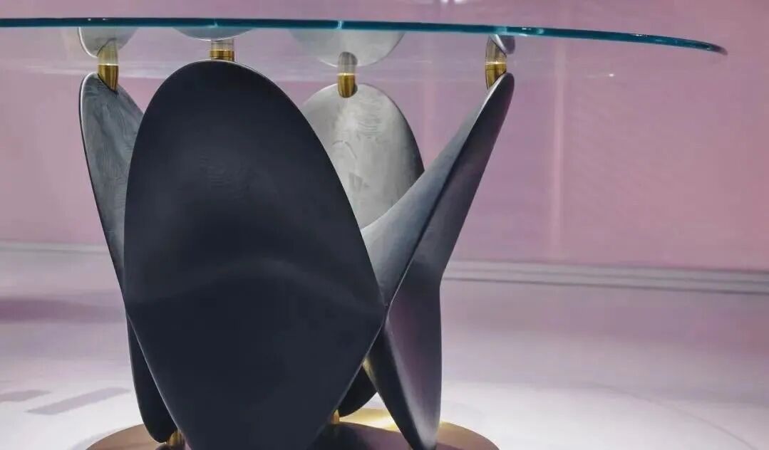 已经连续三届是策展人的体物设计创始人赵云向我们展示了通过五轴CNC工艺打造出的优美曲线。拥有完美弧度的的【鼎】茶几完美演绎了刚中有柔的特点。