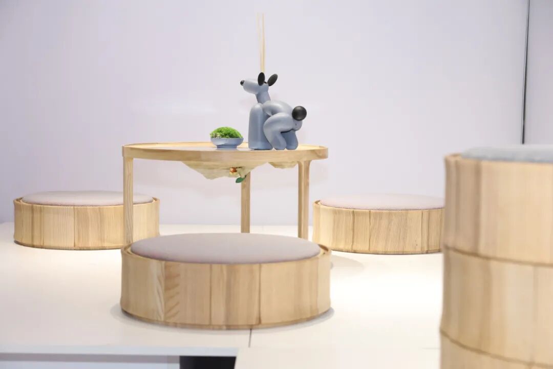 【你中有我】蒲团,是一款能在多个场景使用的蒲团,多个垒起来能出现凳子、茶几、床头柜等附属功能。利用五轴技术加工出竹节的复杂造型,增加趣味性。(荣获2020金点单品奖)