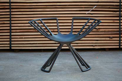 设计说明:一把与人体骨骼结构相契合的椅子,8 字形的曲面座面,呼应了人体的坐骨骨骼形态,用椅子的“骨骼”创造出新的人体“外骨骼”。产品名称:逍遥椅