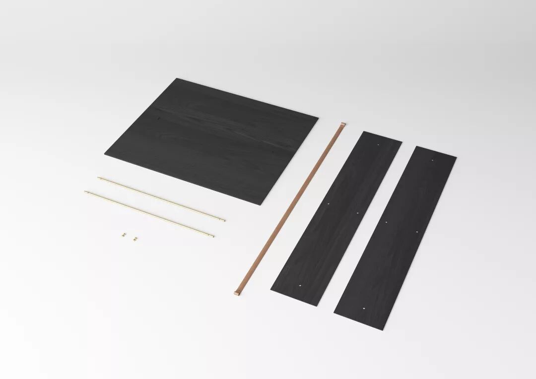 拉桌以动词“拉”拟人化的方式来呈现桌子的连接结构方式,利用5mm薄胶合板的韧性、钢棒的硬度和皮带的伸缩自由性,形成一个相互拉扯的稳定循环。拉桌鼓励使用者去体验本该属于生产过程中的弯压工艺,同样让三种材质相互拉扯牵制的安装过程充满游戏属性。