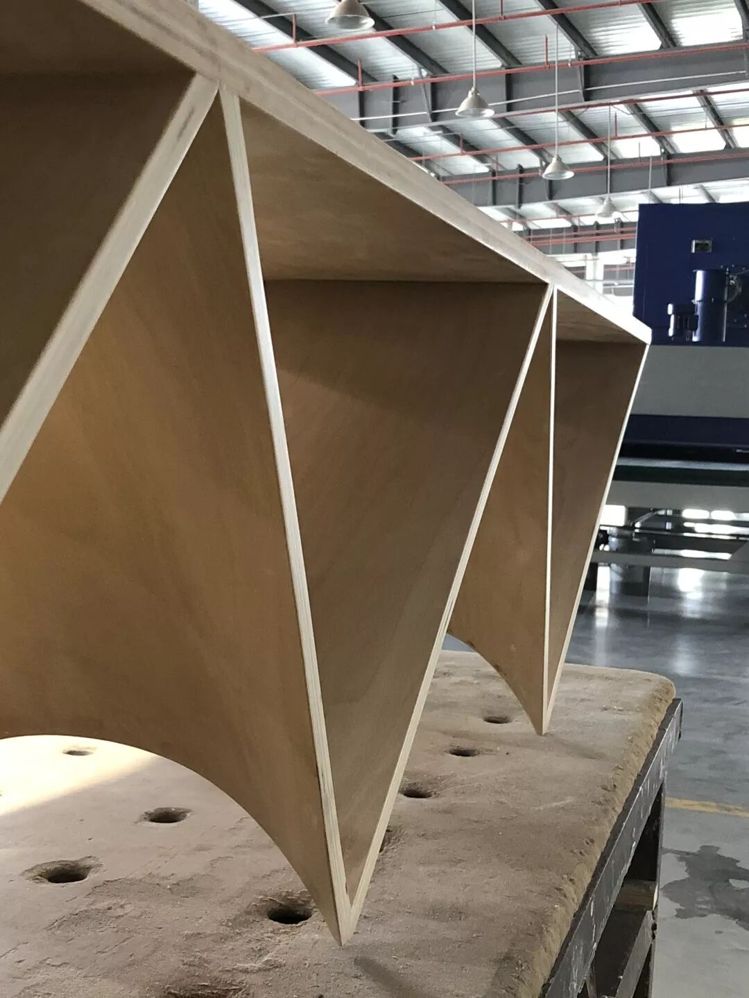 虽然蔡烈超与赵云的设计的样品在外观上看起来较为简约,但其背后结构较为复杂,其特点为弯曲、韧性、拼接结构以及精度要求高。导致特别容易受板材品质、加工精度、工人经验等多重因素的影响而产生较大变形。