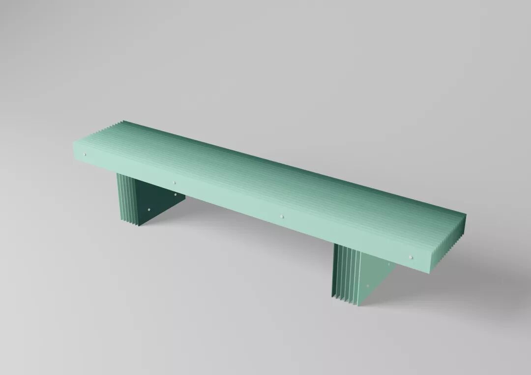 绿色渐变版本的栅格长凳是设计师对颜色区间像素化的试验,同样也是对合作工厂高超油漆工艺的呈现。