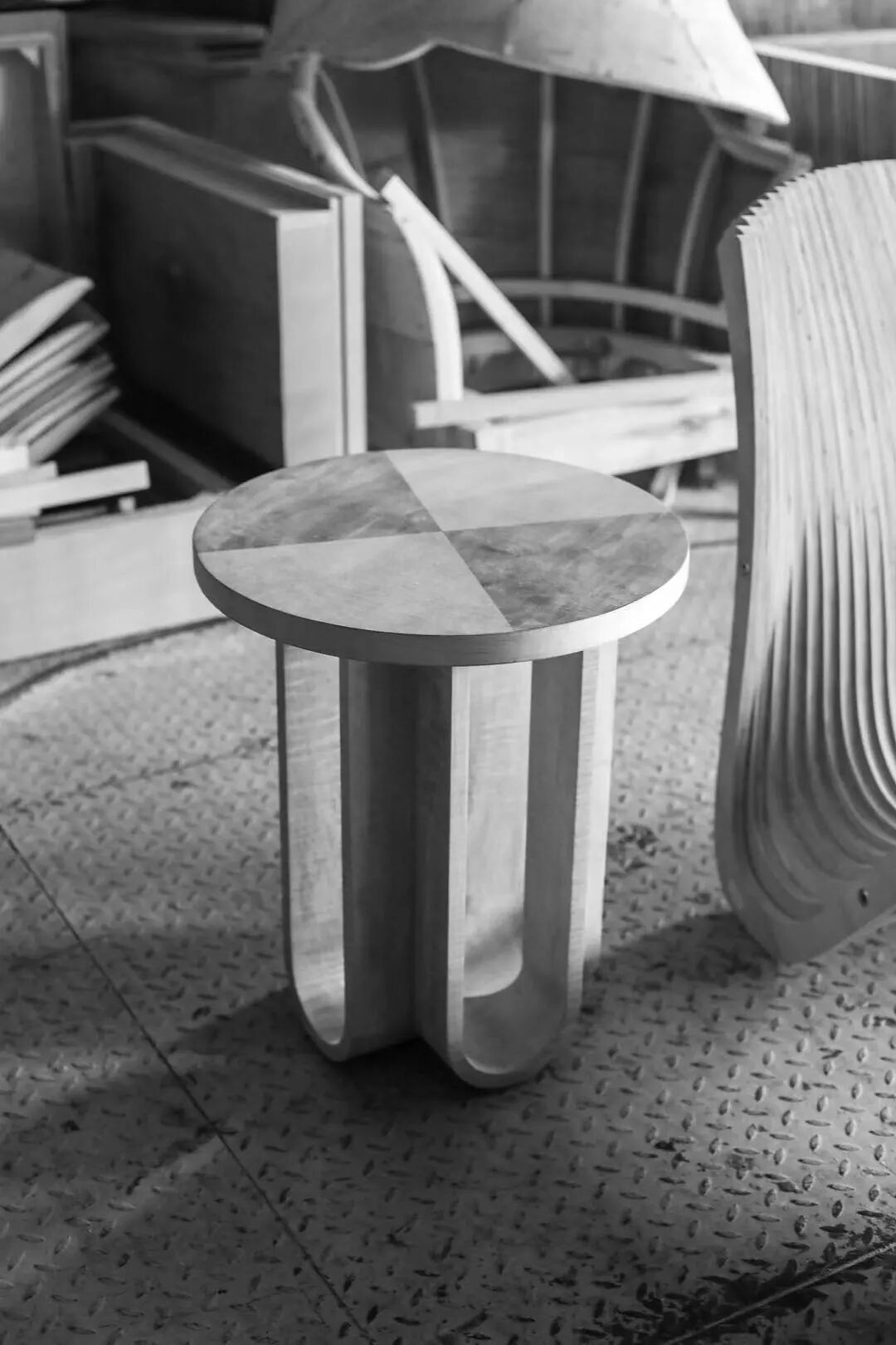 和我对接的企业是澳瑞家居,他们最大的核心工艺是木皮拼花,三款产品我采用了贴木皮的方式,增加产品的视觉价值感,当然还是以当代设计的手法,虽然工艺难度不小,他们完成得还是非常出色的。