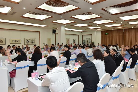 会议第三个议程是,上海市家具行业协会延期换届议案。由于上海家协秘书处承担了上海市经信委都市产业处“2019上海家具产业发展调研报告”的任务,为报告的完整性,特向上海市家具行业协会六届七次理事会正式提出延期至2020年7月换届的申请。经过现场理事单位投票表决一直通过,上海市家具行业协会关于延期换届的申请报告。