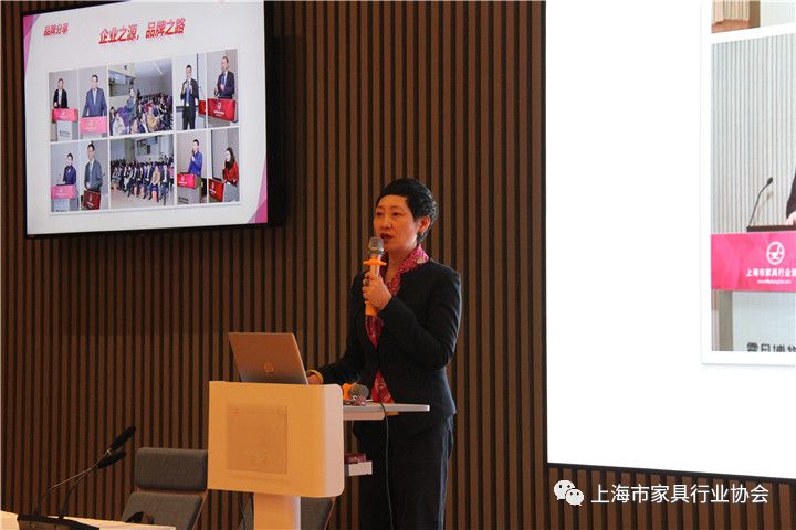 上海市家具行业协会秘书长李霞向来宾分享上海家协在推动企业品牌创建方面的经验与心得。
