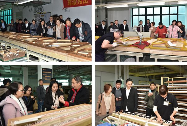 首先参观珠江钢琴工厂,大家近距离了解一架钢琴的生产流程,每一道工序都力求精益求精;大家纷纷感叹道好的品牌与产品质量是分不开的,产品质量与好的品控管理是分不开的。
