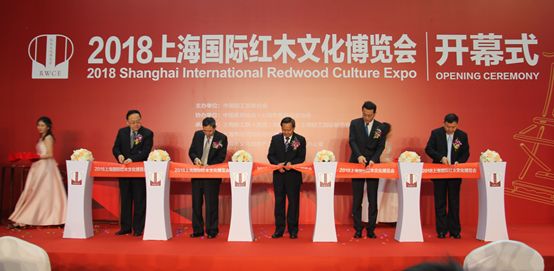 开幕式由中国轻工业联合会副会长陶小年主持,中国轻工联合会 秘书长兼法人代表杜同和、中国家具协会理事长徐祥楠、上海市经济和信息化委员会巡视员陈跃华、上海新工联(集团)有限公司董事长吴文分别致欢迎辞,在致辞中分别指出举办本次博览会的目的和文化复兴的重要意义。中国轻工业联合会会长张崇和宣布2018上海国际红木文化博览会正式开幕。