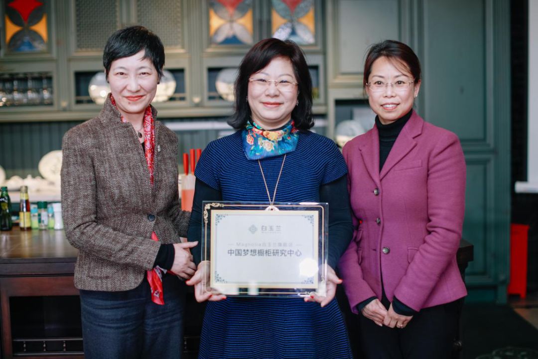 白玉兰橱柜将白玉兰Magnolia旗舰店设为“中国梦想橱柜研究中心”。上海市家具行业协会秘书长李霞女士、东华大学时尚创意产业研究中心潘瑾主任以及上海白玉兰家具有限公司董事谈慧俐女士共同为“中国梦想橱柜研究中心”揭牌。这也预示着在未来,白玉兰橱柜将会携手协会、行业、设计师,更深层次地研究厨房文化,让更多中国精英阶层享受到高品质的“中国梦想厨房”。