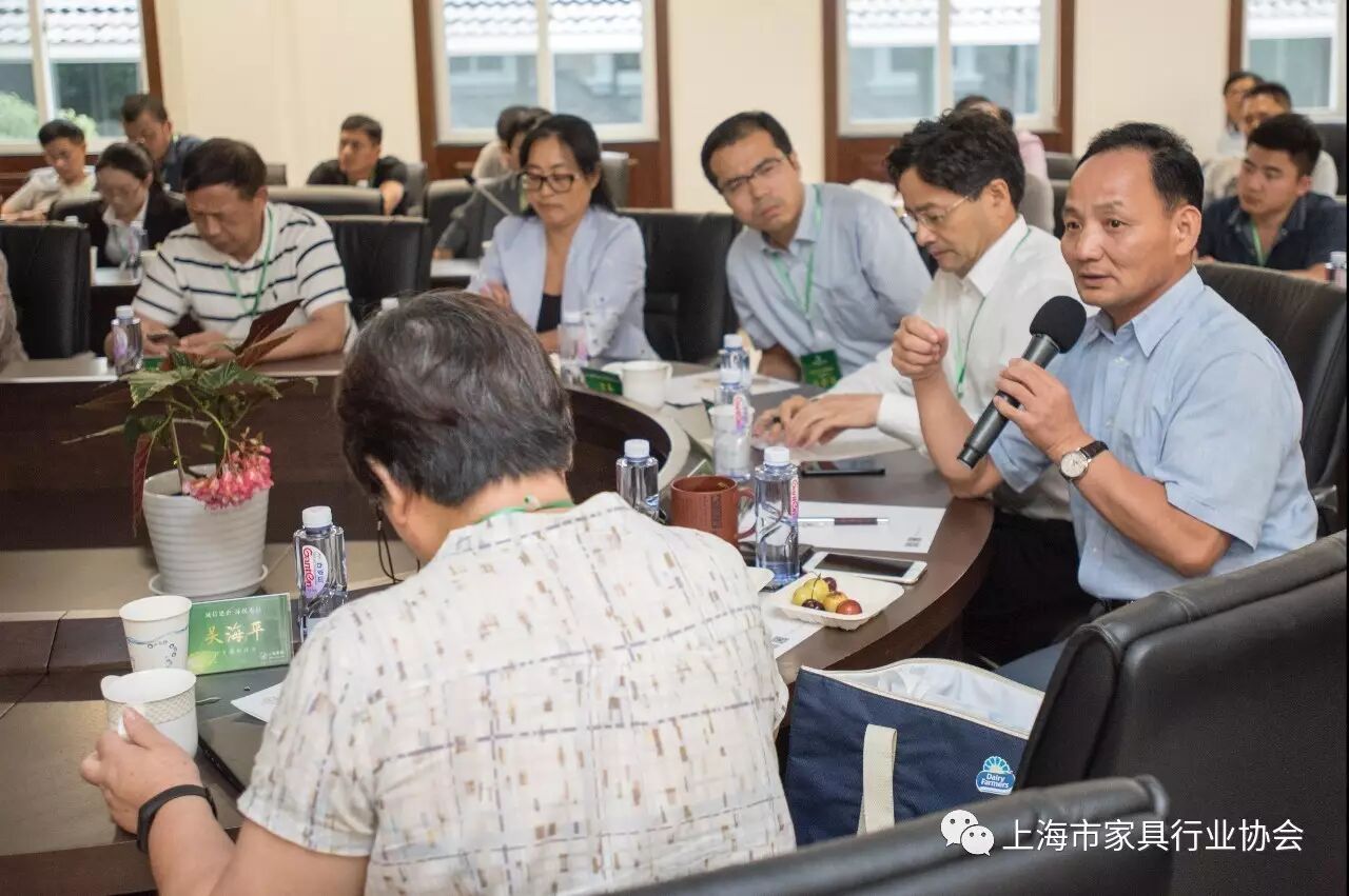 下午,专题研讨会在白玉兰家具三楼会议室召开,会议由上海家协秘书长李霞主持。