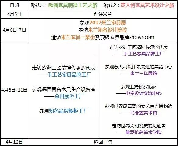 2017年4月,上海家协组团前往意大利参观米兰国际家具展,观展团将分为欧洲家具制造工艺之旅和意大利家具艺术设计之旅两条路线,领略欧洲家具制造工艺及设计艺术的魅力。家具人和设计师们还等什么!
