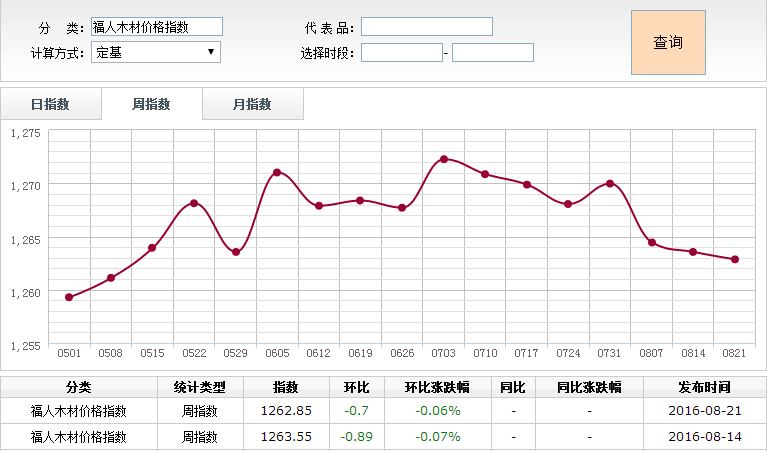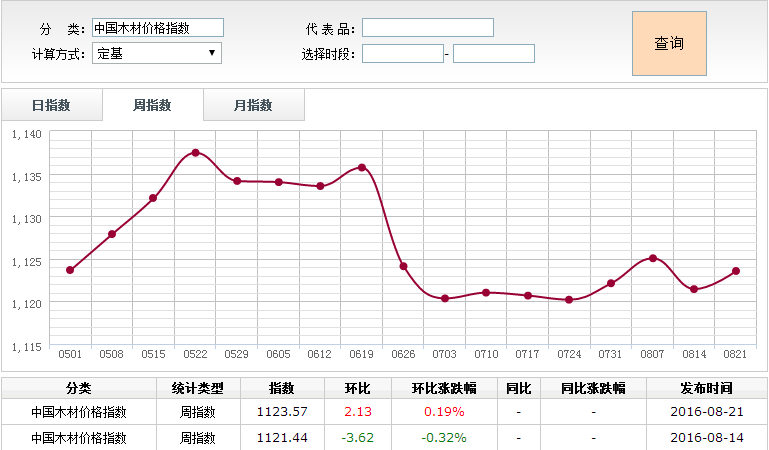 2016年8月15日-21日木材价格指数周报