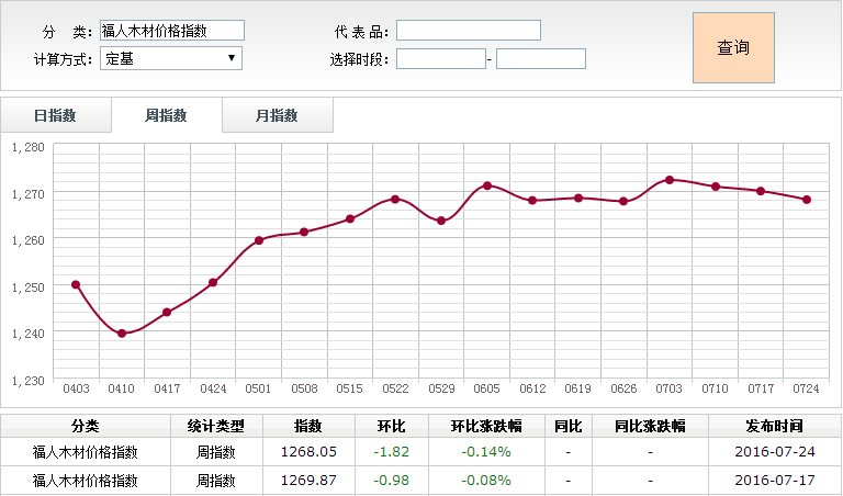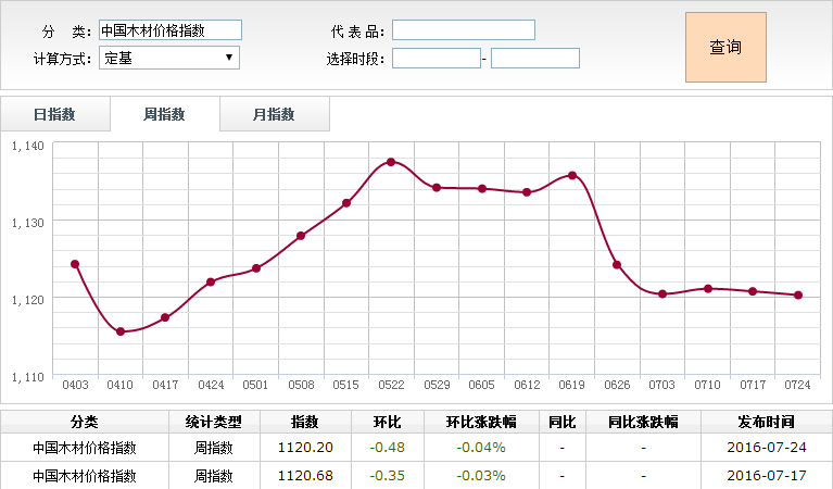 2016年7月18日-24日木材价格指数周报