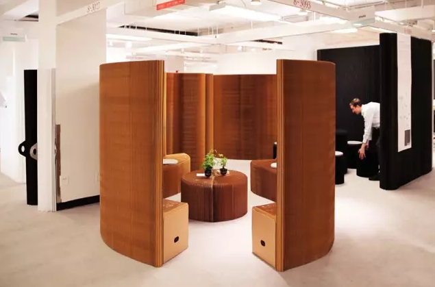 最具个性的家具设计当属这个有牛皮纸围合成的空间,全套作品利用牛皮纸的韧性折叠翻转是可以重复再利用的设计作品,同样轻便便于携带。