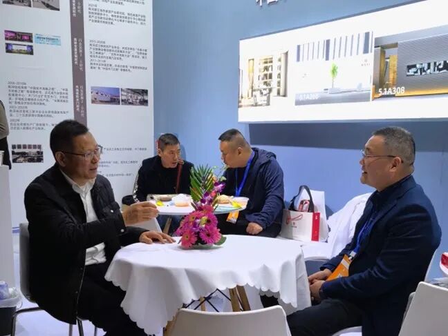 此外,杨君渊在参观过程中在南浔木业的展区与湖州市南浔区家居协会秘书长屠赞宏就如何高质量打造家居行业协会,如何发挥协会优势,打造协会特色亮点进行了经验交流。