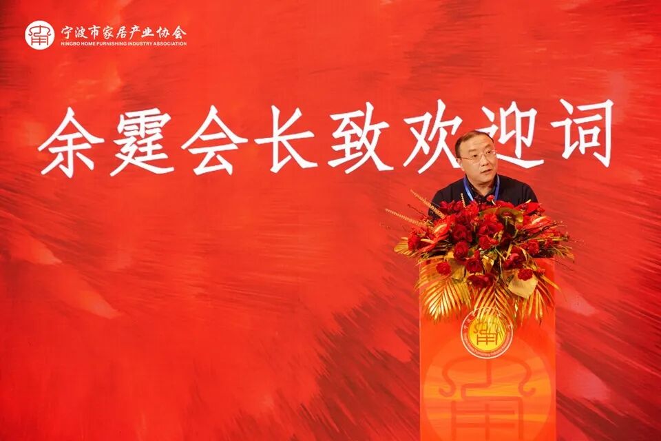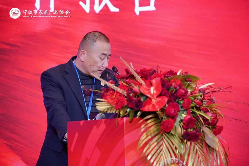 会上,余霆会长首先为本次会议致辞。致辞中余霆回顾了过去的2023年,是几经波折的一年,是新冠疫情后、全力拼经济的一年。制造企业、全案企业、跨境电商企业及整个家居上中下游产业链在全球需求萎缩、流通氛围低迷等多重考验下,不断调整,逐渐进入稳定期。肯定了在产业发展的进程中,我会积极求变、主动破局,各大版块取得的长足进步。肯定了我会在制造业领域、全案设计领域、跨境电商领域取得的显耀成绩。2024年,我们将以工业和信息化部、住房和城乡建设部、商务部、市场监管总局联合出台的《推进家居产业高质量发展行动方案》为总纲,加快落实《浙江省“415X”先进制造业集群建设行动方案(2023—2027年)》、《宁波市加快打造“361”万千亿级产业集群行动方案》,以协会为众创平台,以共同富裕为愿景,开启新一轮的商业模式创新和产业协同创新。