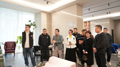 在参观过程中,御景汇品牌的发言人王璇讲述御景汇目前立足于宁波本土,实施精品战略,是一个融合高端全屋定制及软装家具的整体家居服务平台,在宁波家居界树立了自己的专业形象。形成了以“完善的产品体系,完善的服务体系,以及较高的市场美誉度”为核心的企业竞争力,并与到访的企业家们就产品设计理念、品牌宣传方式等内容进行了深度的沟通与分享。