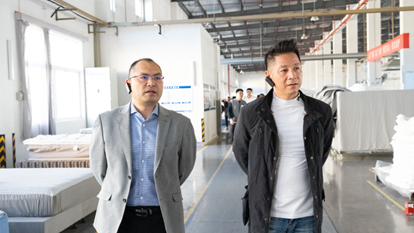 当天下午,温州家具商会一行到访参观了梦神集团慈溪生产基地。深入考察了床垫生产的各工序作业车间。由专业人士详细讲解了从床垫的生产流程、技术应用及品质控制等方面情况。并对梦神集团的精细工艺和严谨态度表示强烈赞赏。随后在展厅的参观中,更加深入地了解了现今所生产的不同款式床垫的特点和优势,部分企业家表示,后续一定要追加产品订单,对产品质量表示了高度认可。