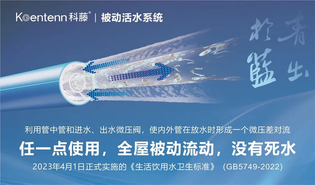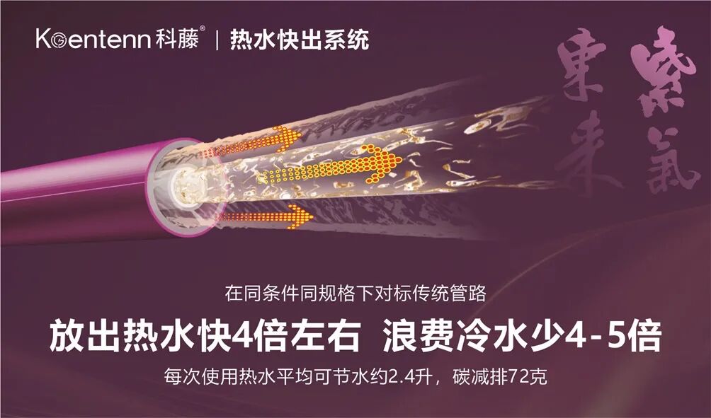 企业现有核心品牌"科藤Koentenn",基于植物藤蔓内循环的仿生学应用发明而来,是给水管道行业的开创性产品。利用管中管自身特殊性能,结合不同的阀件,研发出套房-热水快出系统(同等条件下比传统管路出热水速度快4倍左右,节水4-5倍)、套房-被动活水系统(任一用水点使用,实现全屋管路被动流动,没有死水),结合智能控制研发出大宅-智能循环系统 (点对点即时即用即循环,比传统大循环节能90%以上)、大宅-活水循环系统等,以实际的应用产品和亮眼的数据,完美解决了行业热水痛点,既提升了居民的生活用水改善型消费,又符合国家碳减排政策,直接助力绿色节能建筑领域。