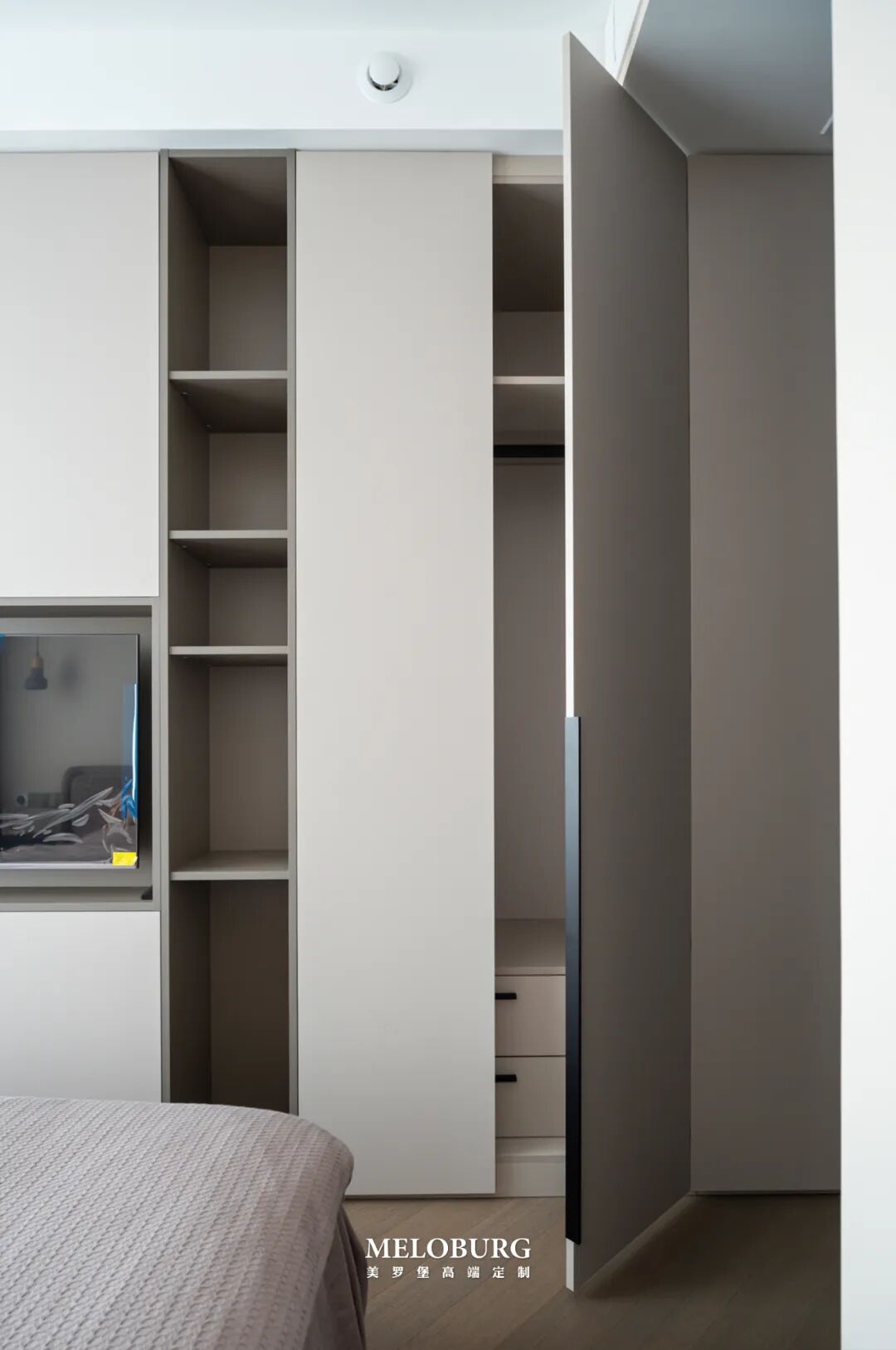 挂衣区,内置私密抽屉柜,人性化贴心设计,分门别类,个性化收纳。