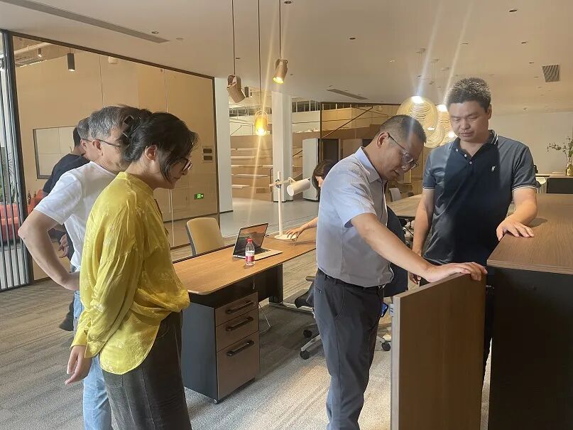 参观展厅中,介绍到得力普乐士的展厅以“融合”为主题,将自然、艺术、品牌文化等元素融入到每一处办公环境中,PLUS展示区、新品展示区、共享空间、职员空间、座椅体验区、高管空间、培训空间、和功能区八大不同展区,基于专注、专属、共享、邻里、闲谈、传导、元会议、研讨、创造、充能十个办公行为,结合办公工具和场所,营造舒适、灵活高效的办公空间,协助员工舒心、专注、高效完成工作。
