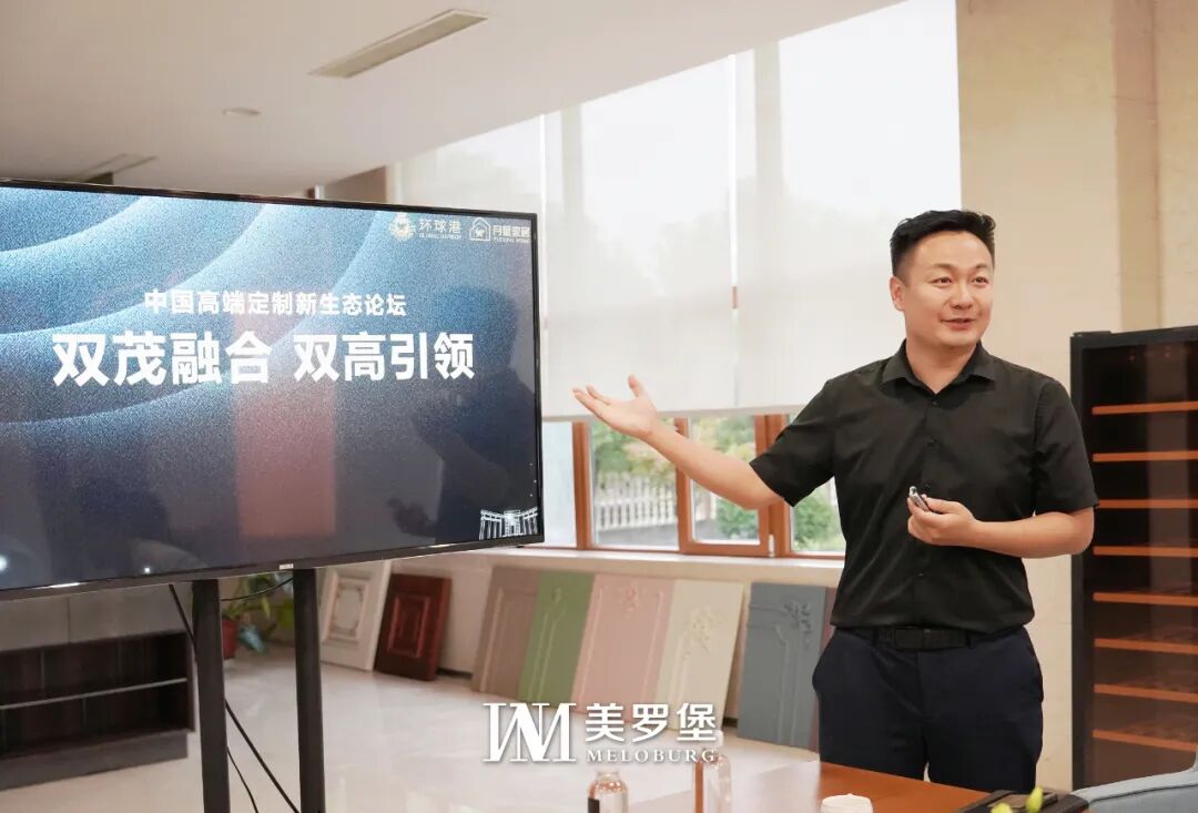 接下来,月星家居新零售连锁集团招商联发中心副总监于涛介绍了月星家居《共创高端定制新生态》战略部署,用能力、实力、努力、业力拓展新市场、新生活与新生态。而美罗堡作为高定行业的领头羊,希望双方有更多紧密的合作。