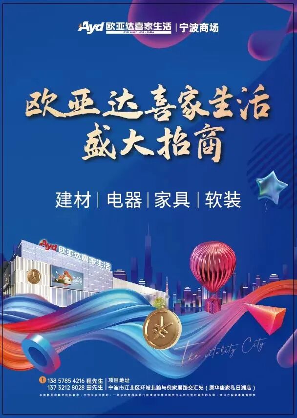 欧亚达喜家生活宁波商场项目体量24000方,发挥项目位于宁波市中心的区位优势和欧亚达喜家生活品牌优势,面向精品家居,定位于消费者直接采购的“家装集采中心”。面向陶瓷卫浴、门窗地板、智能家电、全屋家具、家装设计、软装灯饰、楼梯吊顶等业态打造价格亲民的家装集采中心,结合各种促销特卖,打造宁波市中心永不落幕的家装盛会。