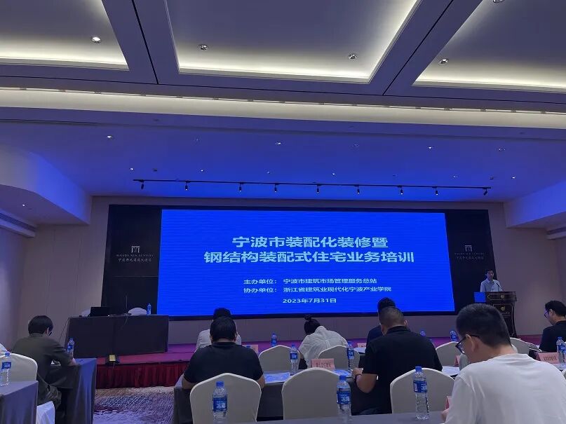 2023年7月31日,由宁波市建筑市场服务管理总站主办的“2023年宁波市装配化装修暨钢结构装配式住宅业务培训”在开元名庭大酒店五楼开元厅举办,宁波市家居产业协会全案设计分会秘书长及二十家代表企业负责人代表装修和部品企业参加此次培训。