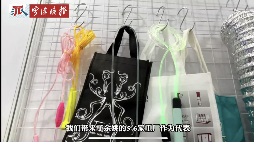 “这款‘会发光的跳绳’,能让你成为‘广场上最靓的仔’!我们特意组织5-6家余姚企业带来类似的畅销品,再推荐给更多客户!”