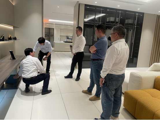 黄局长一行详细了解了产品在技术、质量、服务等方面的优势,并就产品对房地产精装质量通病问题的解决和提高行业质量管理等话题展开积极探讨。此次考察加深了政府住建部门对“臻享生活家居”的产品和系统解决方案的了解和对公司精装、软装一体化的解决方案的高度认可。黄局长一行对“臻享生活家居“在精装、软装一体化集成创新发展及促进提高精装修产业质量、满足人们对美好生活品质要求方面所做的大量探索、开创和卓有成效的工作给予高度赞扬,同时也提出了更好的发展建议和下一步要站在全市和行业的高度,为推动建筑装饰行业高质量发展贡献更多的解决方案的工作要求。