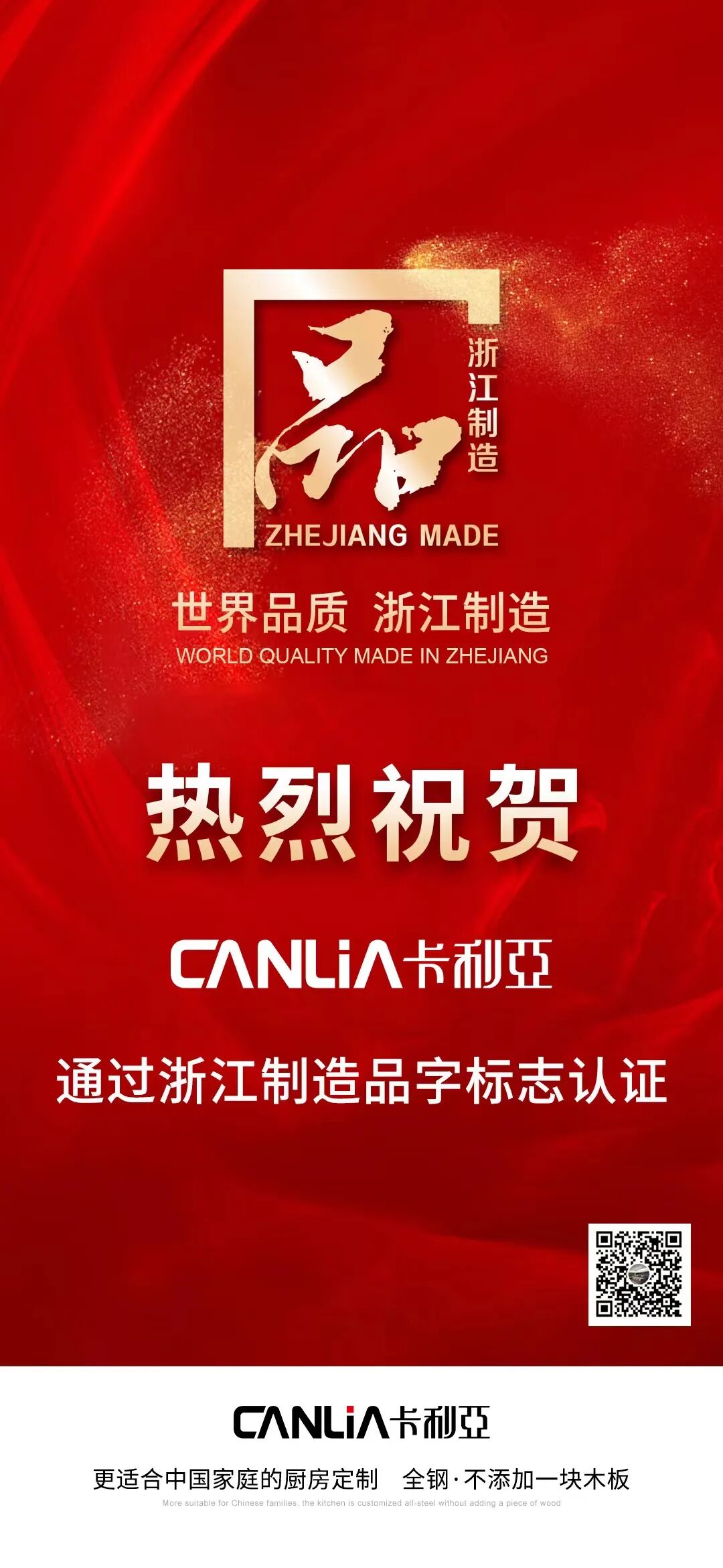 世界品质,浙江制造!祝贺卡利亚通过浙江制造“品”字标志认证