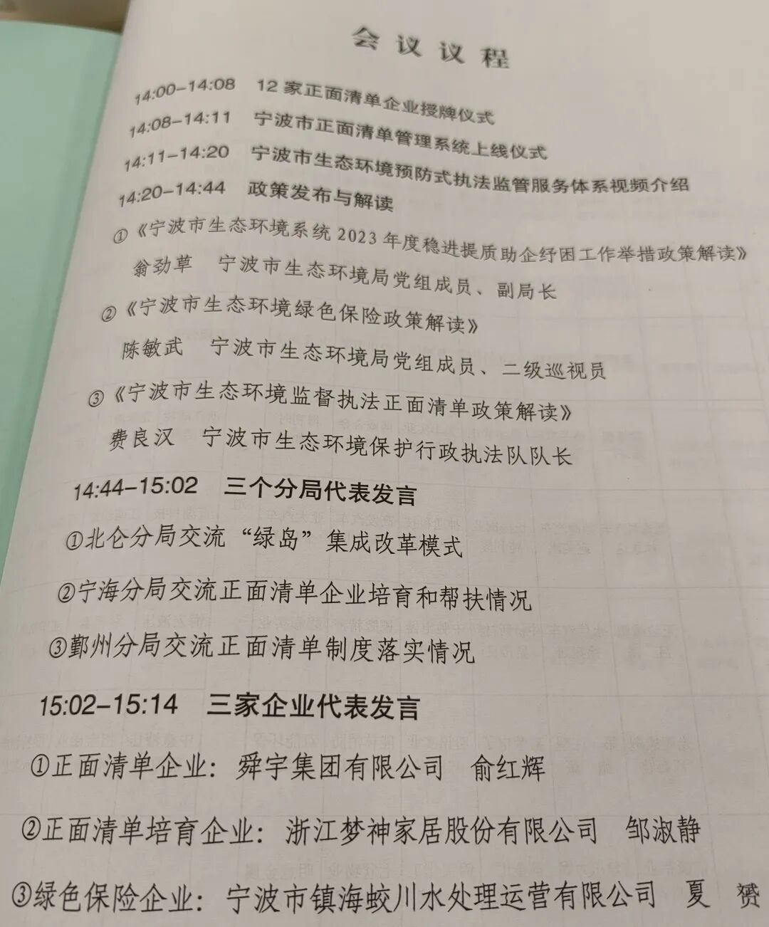 2023年2月,宁波市生态环境局将浙江梦神家居股份有限公司列入正面清单培育企业。