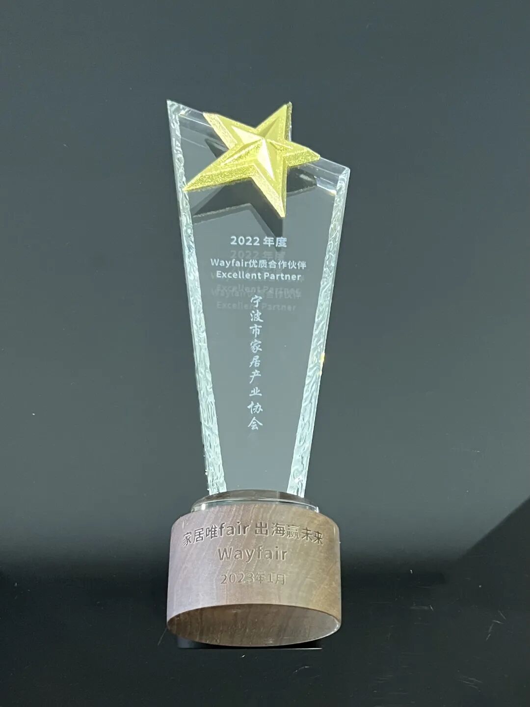 2023年1月,宁波市家居产业协会荣获“2022年度Wayfair优质合作伙伴”大奖。
