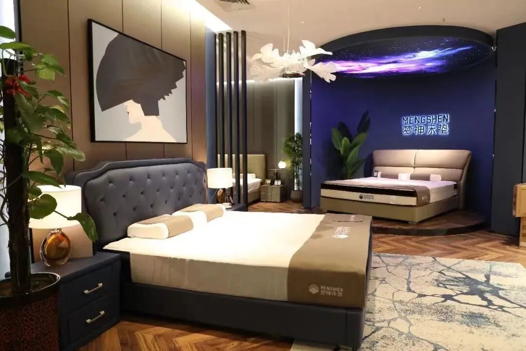 本次展会梦神以全系列王牌阵容重磅出击,让更多观展用户都能体验到适合自己的床垫。同时,梦神以年轻品牌化的空间设计,向观展用户进行视觉传达,厅内规划有独立智慧睡眠空间,以智能科技提升更人性化的用户体验。我们将多种材质进行融合碰撞,平衡美感与客户洽谈功能,为观展用户打造自在轻松的社交空间。