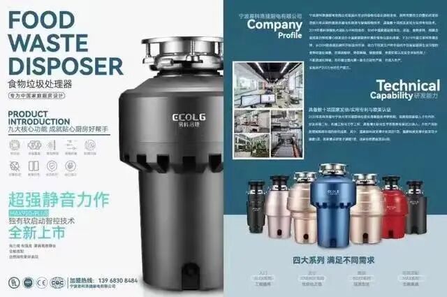宁波易科洛捷厨电有限公司是国内专业的食物垃圾处理器制造商,拥有完整自主的整机研发制造能力和尖端的直流永磁电机制造与智控技术,具备数十项相关发明与实用技术专利。2019年与中科院合作,针对中国家庭厨房高油,食物多样,细菌虫害频发的特性在原有出口技术基础上,潜心研发适合中国家庭厨房环境的食物垃圾处理器。并于2019年建立易科洛捷品牌,从OEM到自建品牌正式开拓国内市场。致力于研发设计符合现代中国家庭厨房生活习惯的食物垃圾处理器,在高效粉碎,静音降噪,杀菌抑制,便捷智能以及安全环保性能上不断改进和突破;同年建立了国内第一条全自动生产线,并投入生产,实现年产200万台的生产能力。