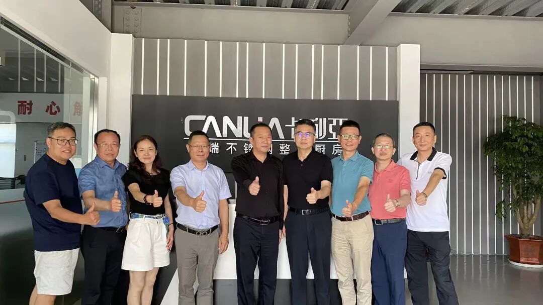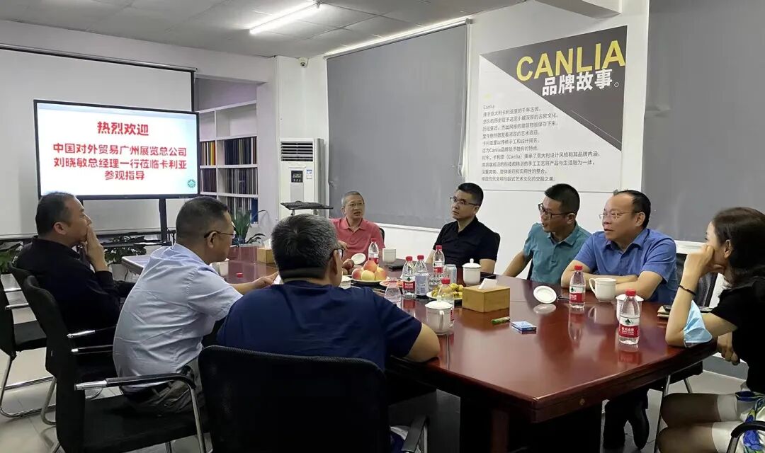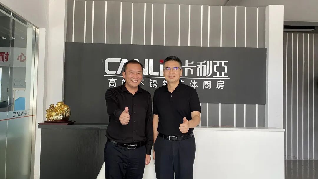 2022年8月10日上午,中国对外贸易广州展览总公司刘晓敏总经理、浙江省现代家居产业研究院院长、宁波市家居产业协会执行会长兼秘书长杨君渊一行于百忙之中莅临卡利亚公司参观指导,卡利亚创始人张总对两位领导的到来表示热烈欢迎,双方就不锈钢定制家居行业态势及卡利亚的发展进行了深入交流和探讨。