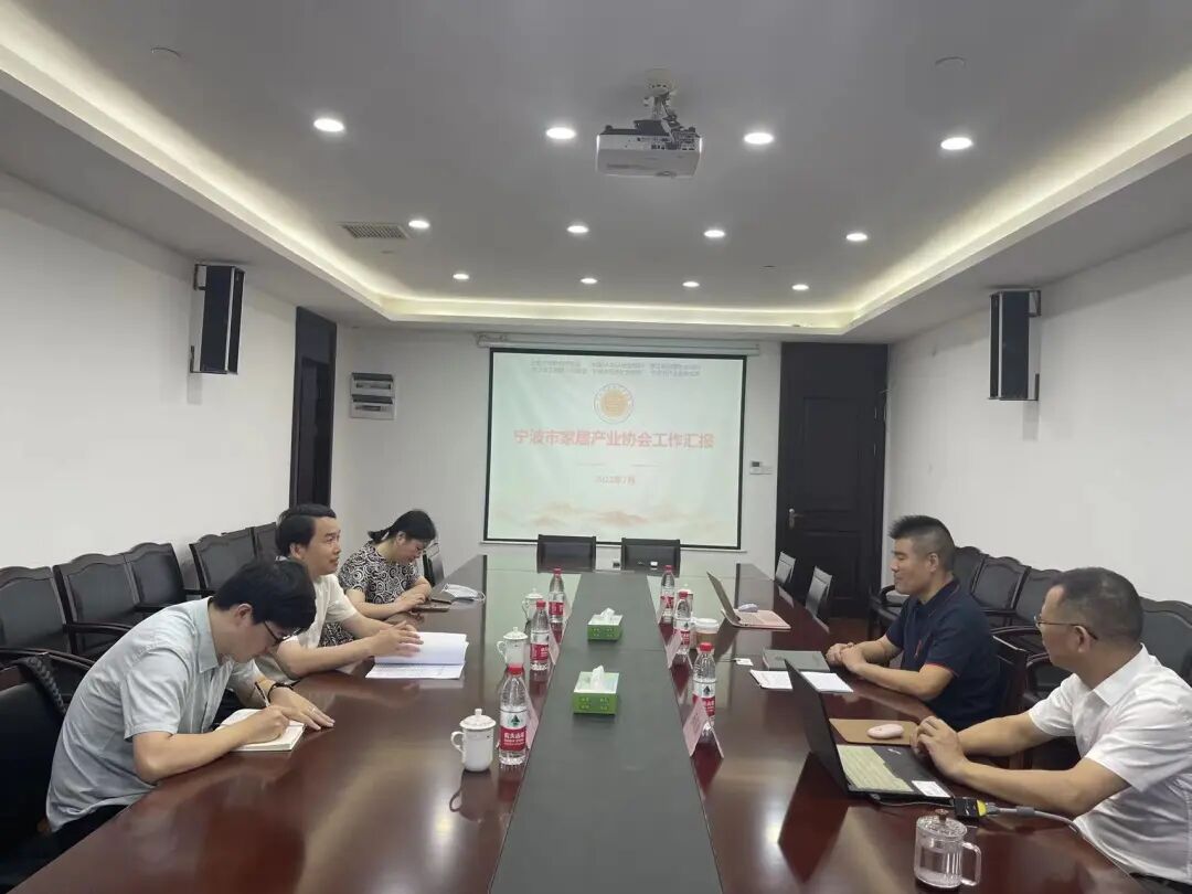 2022年7月13日,宁波市发展和改革委员会党组成员、副主任高海军,产业处处长张艳等领导一行莅临我会调研指导。宁波市政协委员、宁波市商会副会长、宁波市家居产业协会会长丁敏,浙江省现代家居产业研究院院长、宁波市家居产业协会执行会长兼秘书长杨君渊等作了汇报。