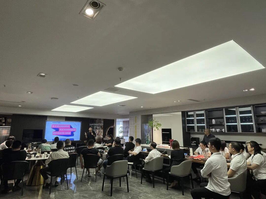 6月28日下午,协会邀请了原字节跳动商业化运营、原抖音电商规则管理运营、现浙江阿迪儿创意科技创意总监Rock老师举办“玩转家居行业内容分享”交流分享会。宁波市家居产业协会会长单位美罗堡、协会流通委副会长单位艾琳家居、洪管家,铭品装饰、蔡小姐家居、全友家私、一菲家居、简自家、欧逸家居、悠创家居、OOD、巴夏、雅兰等十多位品牌经销商参与此次交流会。