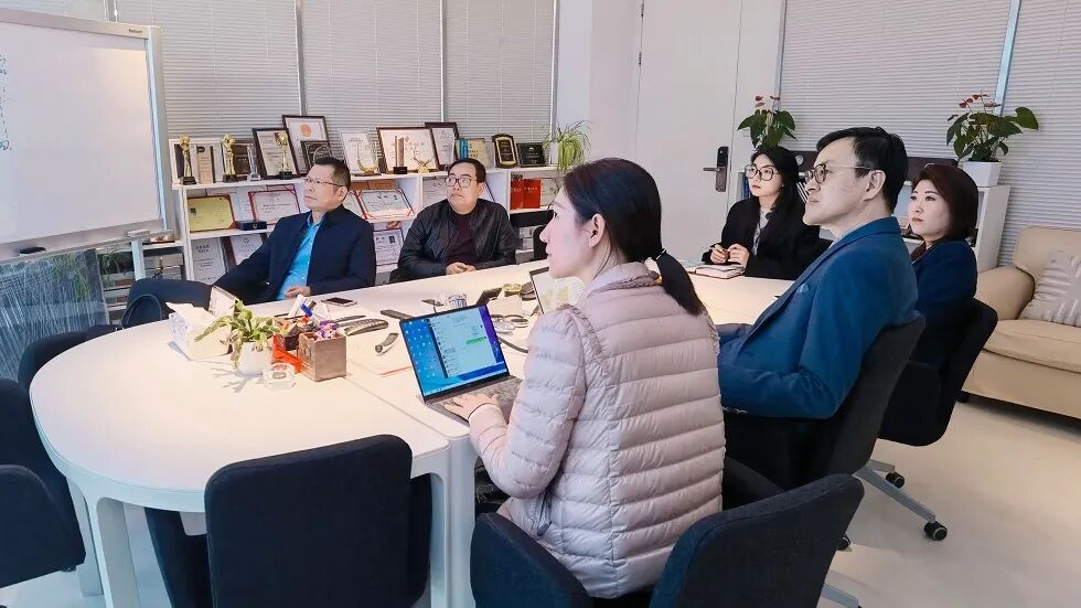 摩根智能副总裁/总工程师张珣博士携霍斯学院院长苏唐女士亲切接待了杨院长一行,张珣博士分享了摩根智能的品牌发展路径,以及跟华为的战略合作伙伴关系,摩根作为宁波本土企业,愿意跟协会一起为行业从业者以及商业生态建设出一份力量!