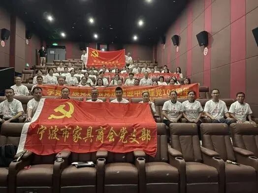 6月23日下午,“观红色电影忆峥嵘党史” 宁波家具行业党组织庆祝建党100周年大型活动在宁波环球时代国际影城“党建厅”举行。