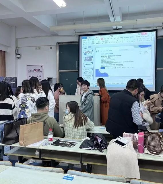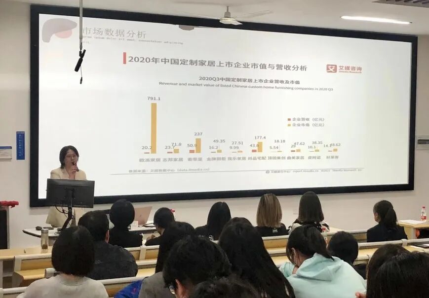 招聘会现场,叶珍珍还给现场学生带来了室内设计《全屋定制行业发展趋势分析》讲座。