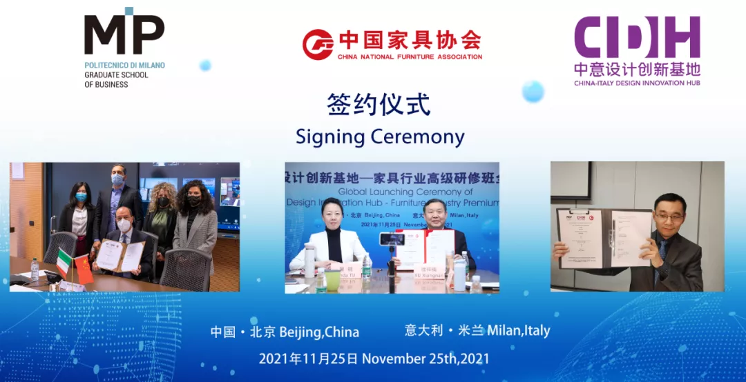 中国家具协会、米兰理工大学MIP商学院、中意设计创新基地三方共同签署合作备忘录。
