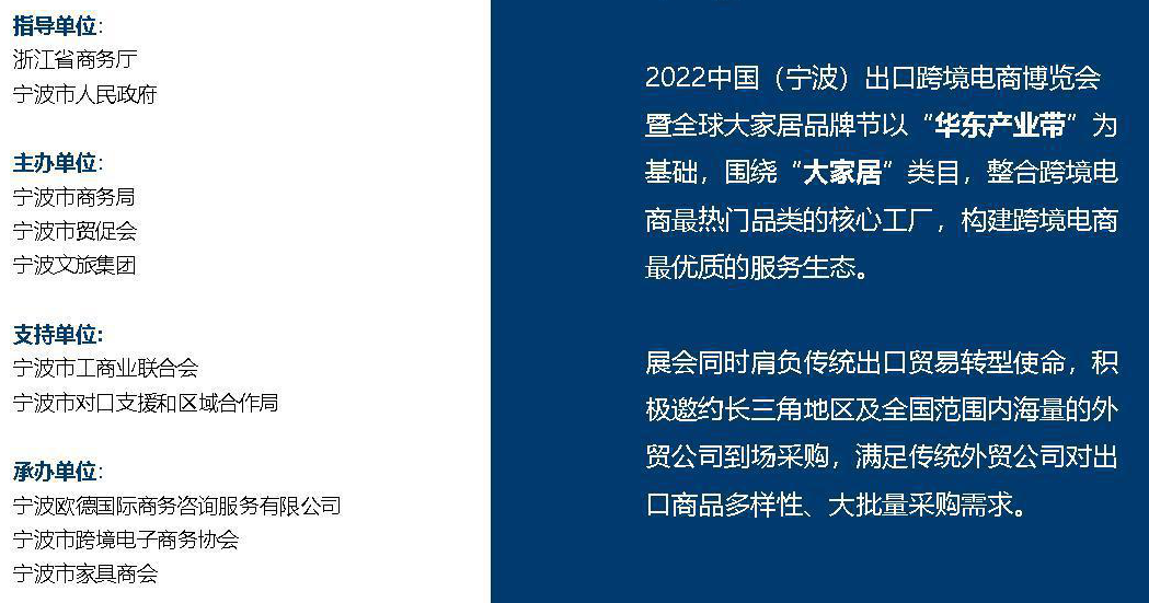 备受业界瞩目的大家居跨境第一展“2022中国(宁波)出口跨境电商博览会暨全球大家...