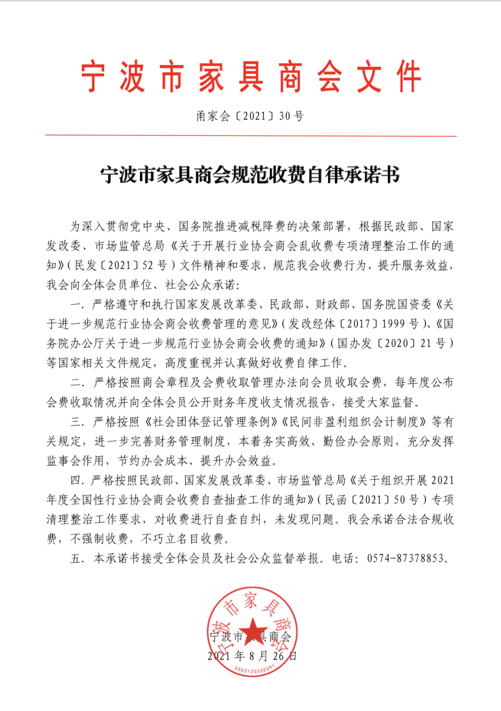规范收费自律书