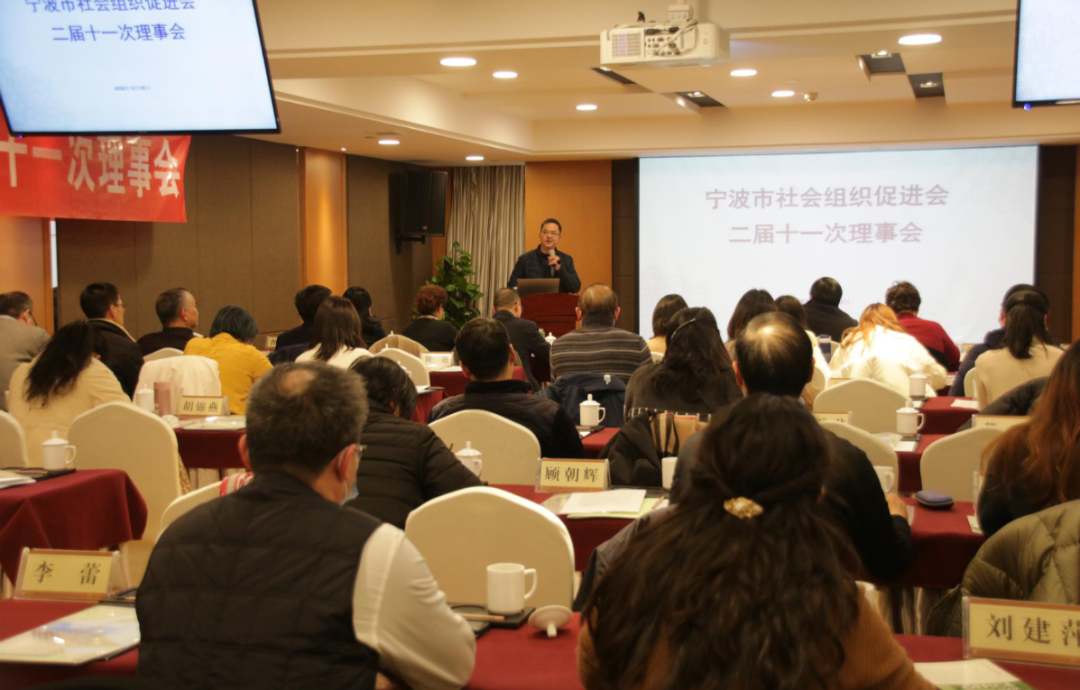 12月30日下午,宁波市社会组织促进会二届十一次理事会在新金星宾馆白云厅召开。会议由促进会秘书长林冬主持。宁波市家具商会作为理事单位出席会议。